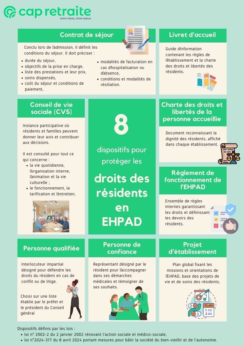 Les droits des résidents en maison de retraite sont garantis par des dispositifs mis en place dans le cadre de plusieurs lois votées au cours de ces vingt dernières années.