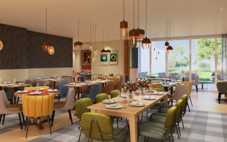 La résidence, avec ses couleurs vertes et beige clair, est accueillante et sûre.