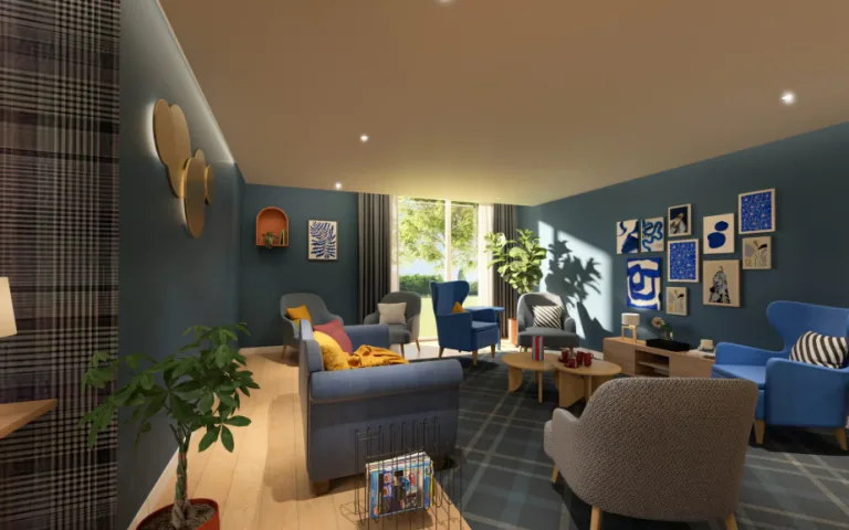 La résidence, avec ses couleurs vertes et beige clair, est accueillante et sûre.