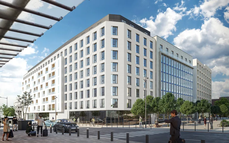 « Dans le quartier de la Madeleine au centre-ville de Troyes, la résidence services seniors OVELIA « Le Carré Madeleine » est idéalement située face à la gare et à seulement 500 mètres de l’hypercentre commerçant et touristique.