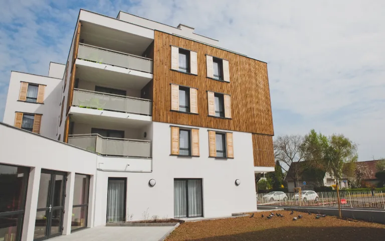 Située dans le quartier résidentiel calme et cossu de la Robertsau, la résidence seniors « Le Pavillon Robertsau » est très bien reliée au centre-ville de Strasbourg grâce au Tram E. La résidence bénéficie de la proximité du groupe hospitalier Saint Vincent et de la clinique Sainte Anne, du Parc de Pourtalès et de la ligne de bus 70. Où sommes-nous ? A 60m de l’arrêt de bus « Robertsau Renaissance » (ligne 70) A 200m (3 min à pied) du Groupe Hospitalier Saint Vincent et de la clinique Sainte Anne A 650m (8 min à pied) de l’arrêt de tram E « Robertsau L’Escale » A 750 m (10 min à pied) du Parc de Pourtalès