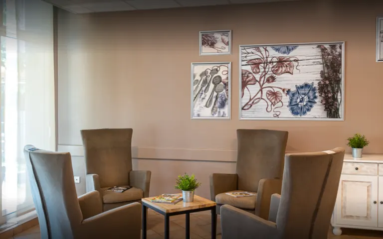 HébergésLire plus au cœur d'un parc paysager, les résidents de cet établissement disposent de tout le confort nécessaire à leur bien-être.