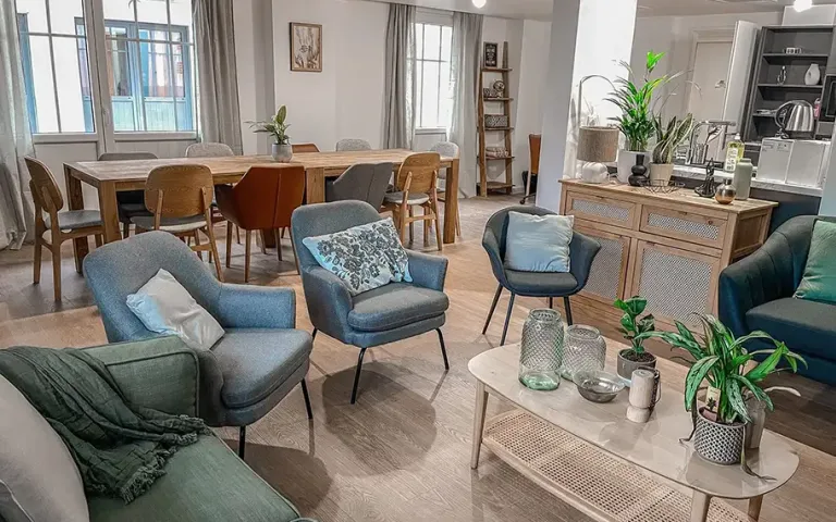 L’habitat est partagé entre 8 personnes âgées accompagnées 7j/7 par une équipe de professionnels bienveillants.
