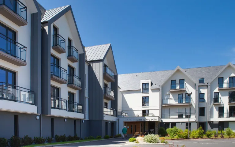 Située juste derrière la Mairie de Pléneuf et son parc arboré, la Résidence Seniors « Les Jardins d’Arcadie » est implantéeLire plus dans le centre-bourg, qui rassemble les commerces et services de première nécessité : boulangerie, pharmacie, supermarché, bureau de Poste, banque… Dans une impasse calme et entourée d’un agréable jardin, la résidence offre tout le confort nécessaire pour une retraite sereine.