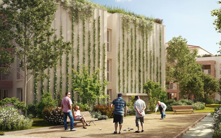 Vous pourrez aussi apprécier les espaces communs extérieurs aménagés et végétalisés favorisant la détente et le rapport à la nature avec le boulodrome, les jardins potagers partagés et les espaces verts arborés.