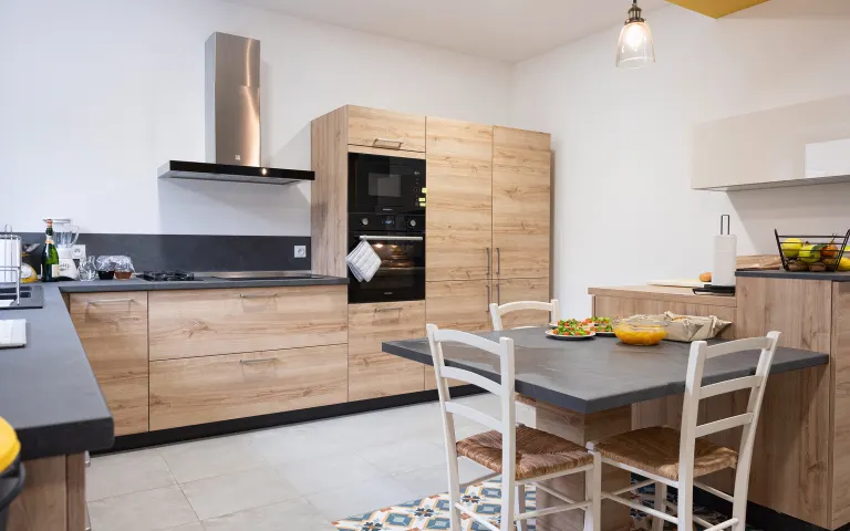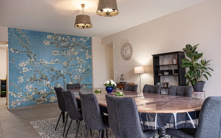 La grande cuisine aménagée est adossée à une spacieuse salle à manger avec vue 10 chambres d’une superficie de 16m² à 35m².