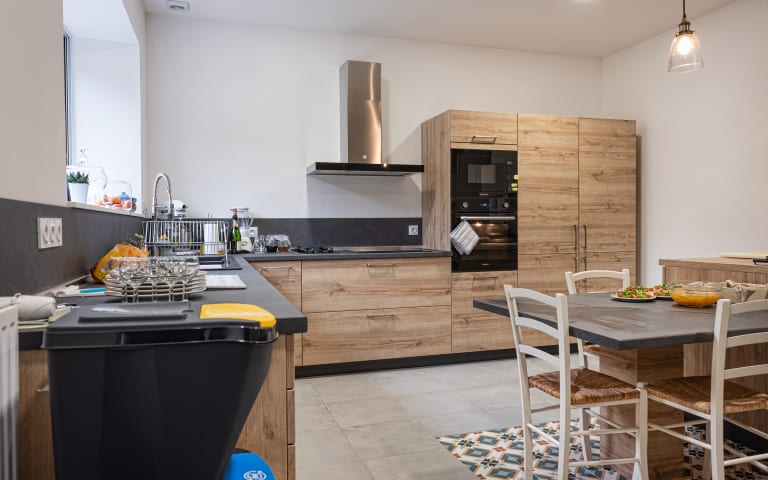 La grande cuisine aménagée est adossée à une spacieuse salle à manger avec vue 10 chambres d’une superficie de 16m² à 35m².