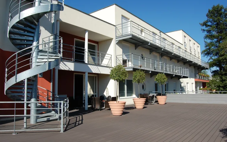 Vous pourrez profiter des terrasses et cours intérieures aménagées et sécurisées.