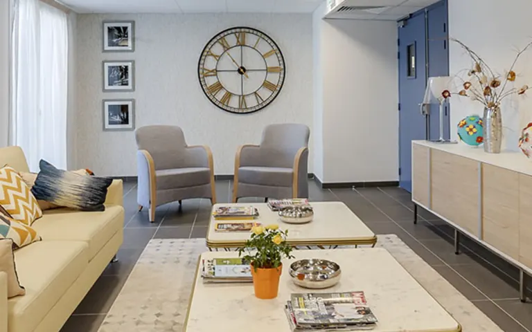 Ses espaces communs sont décorés avec soin pour vous accueillir ainsi que vos proches: restaurant, salons chaleureux, coins détente, et salon privatif pour recevoir vos proches*.