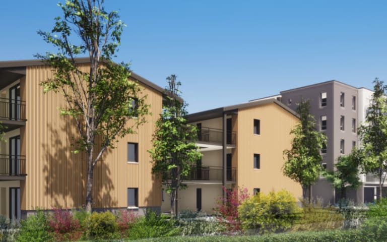 Un second accès piétons depuis la rue Louise Michel permet d’accéder immédiatement aux commerces de proximité : LIDL, pharmacie, opticien… La résidence comporte 2 bâtiments qui regroupent 6 appartements 3 pièces et 26 appartements 2 pièces.
