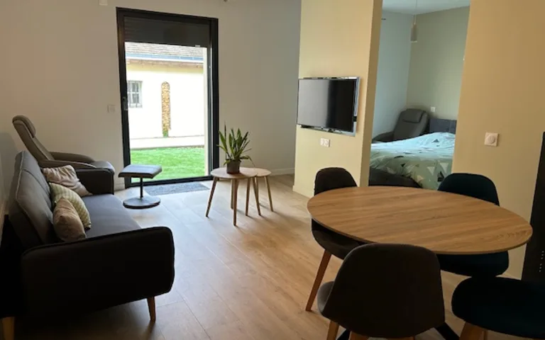 Un espace extérieur privatif accessible depuis la baie coulissante présente dans chaque logement Préparation des repas sur place avec les maitresses de maison, menus variés, repas partagé.