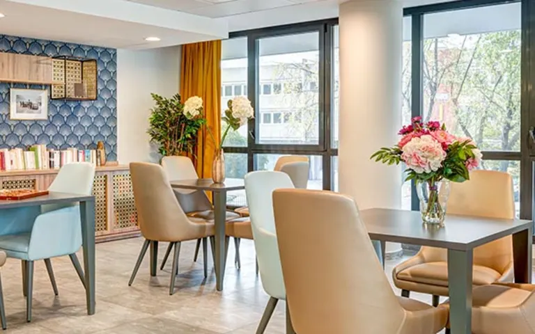 Vous apprécierez le cadre sécurisant de la résidence, garanti par la présence d’une équipe qualifiée active jour et nuit, ainsi que ses logements individuels d’une à trois pièces.