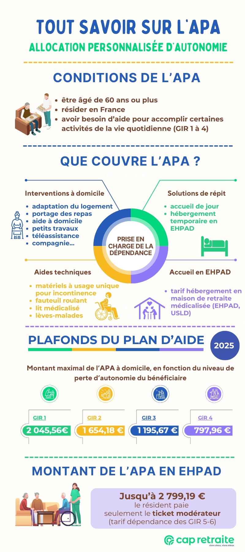 Pour en savoir plus sur tous les détails de l’allocation personnalisée d’autonomie (APA), consultez les réponses de Cap Retraite à vos différentes questions sur le sujet :