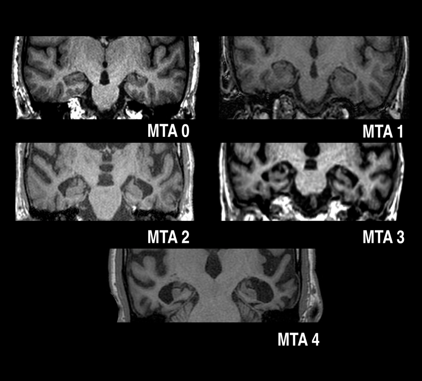 L’échelle de Scheltens comporte quatre grades en fonction de la taille des trois différents éléments anatomiques observés sur une coupe frontale du cerveau :
