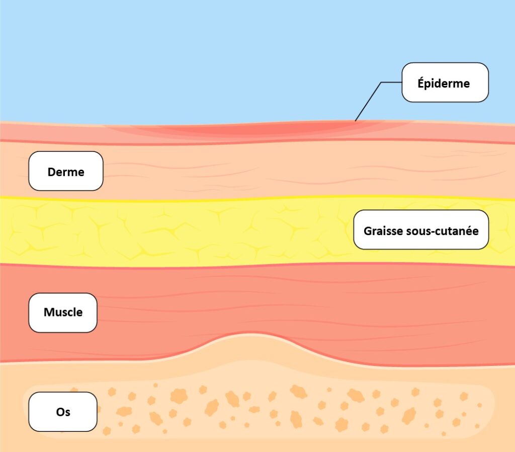 Les escarres sont le résultat d’une pression soutenue sur une zone spécifique du corps. Celle-ci perturbe l’apport sanguin à la zone de peau concernée. Or, le sang est vital, car il transporte l’oxygène et d’autres nutriments essentiels au maintien de la santé des tissus. Sans apport sanguin suffisant, les tissus subissent des dommages et finissent par mourir (on parle de nécrose).