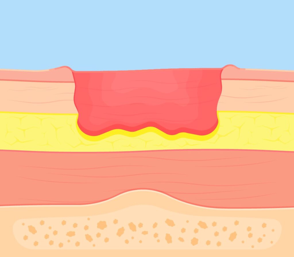 Escarre de stade 3 : perte d’épaisseur de la peau complète